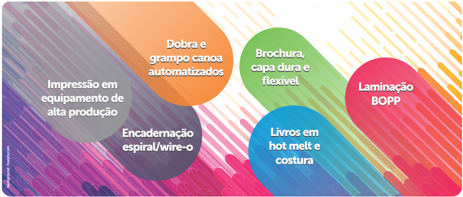 Muitas gráficas atendem qualquer tipo de impressão, embora alguns itens sejam terceirizados. Na Control P todo processo de produção se faz no mesmo lugar. Desde as impressões digitais ao acabamento, como lombada quadrada, encadernações em espiral e wire-o com máquinas automáticas e laminações B/F entre outros, proporcionando rapidez e economia.