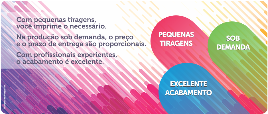 Quando a tiragem é pequena ou o prazo é curto, a solução é impressão digital. Não importa se o impresso for promocional ou editorial, ele é produzido na quantidade desejada, sem desperdício. Entre outras vantagens do sistema, é que o impresso pode ser personalizado com dados variáveis, saindo da impressão pronto para despachar aos clientes.